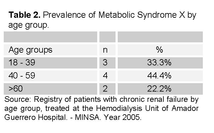 The study universe consisted of the population of the province of Colón (127,582 inhabitants), and the sample included all patients treated with dialysis for chronic renal failure (CRF) during the year 2005. All patients on hemodialysis or peritoneal dialysis in the Hemodialysis Unit at Amador Guerrero Hospital with a previous or established diagnosis of CRF during the year 2005 were included, and those who entered after 2006 or had undergone a kidney transplant were excluded. Data were collected over a three-month period, covering both hospital unit patients and private hemodialysis units in the province. After obtaining informed consent, anthropometric parameters such as dry weight, abdominal circumference, and height were recorded, taking averages of the measurements. Laboratory data corresponding to the months of January, June, and December were extracted from clinical records, including age, fasting glucose, blood pressure, and lipid profile (total cholesterol, LDL, HDL, and triglycerides). For the diagnosis of metabolic syndrome X, the NCEP/ATP III (2005) criteria were used, which establish the presence of at least three of the following factors: abdominal obesity (>120 cm in men and >80 cm in women), hypertriglyceridemia (>150 mg/dl), low HDL cholesterol (<40 mg/dl in men and <50 mg/dl in women), hypertension (≥130/85 mmHg), and elevated fasting glucose (≥100 mg/dl). Finally, the data were tabulated in Microsoft Excel and subsequently exported to EPI-INFO 6.0 for statistical analysis and significance testing.
